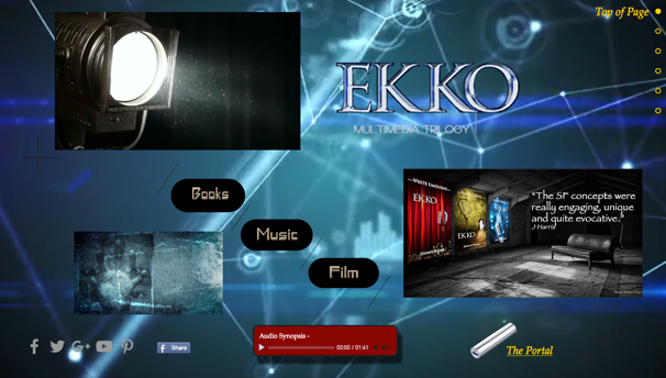 We’d love it if you took a peek at the new EKKO Mysteries Multimedia Website. It’s packed with eye-catching videos, music clips, and story-telling galleries, all designed to keep words to a minimum. While you’re there, give your tired eyes a rest and listen to our EKKO Audio Synopsis on the front page.